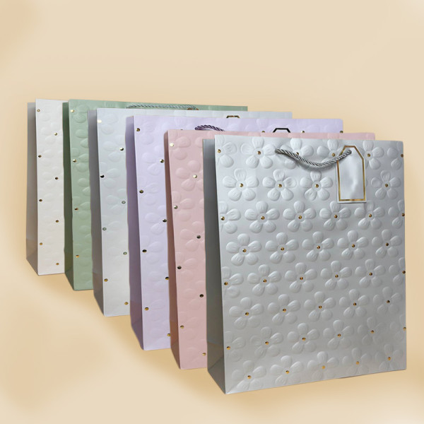 Стильний подарунковий пакет з преміальним тисненням — ідеальний варіант для упаковки подарунків на будь-яке свято. Щільний картон, фактурний візерунок та міцні шнурові ручки створюють елегантний вигляд і забезпечують надійну витримку ваги.