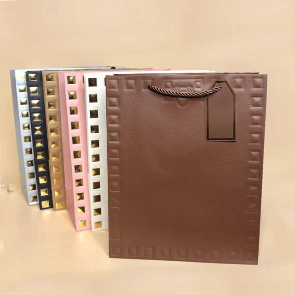 Преміальний подарунковий пакет з елегантним тисненням та декоративними золотими вставками — стильне рішення для упаковки подарунків на будь-яке свято. Щільний картон, фактурне покриття та міцні шнурові ручки роблять пакет не лише красивим, а й практичним.