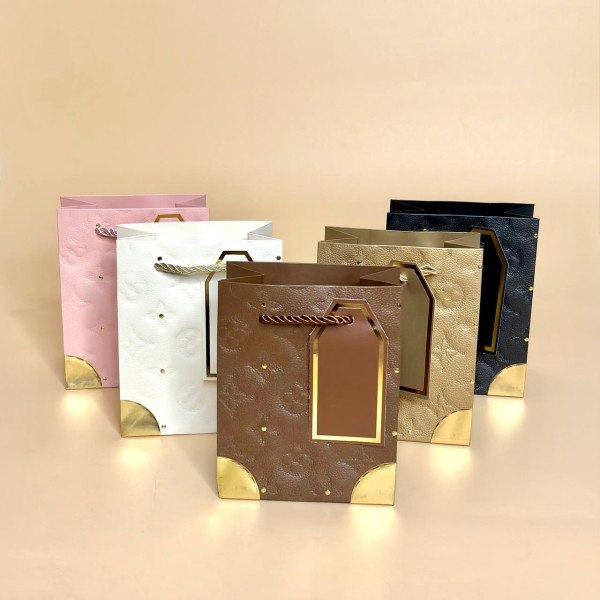 Преміальний подарунковий пакет з елегантним тисненням та декоративними золотими вставками — стильне рішення для упаковки подарунків на будь-яке свято. Щільний картон, фактурне покриття та міцні шнурові ручки роблять пакет не лише красивим, а й практичним.