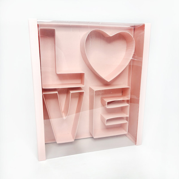 Подарункові коробки “LOVE” створені для особливих моментів. Вони складаються з чотирьох секцій, де одна з них — у формі серця. Такий дизайн ідеально підходить для створення романтичних композицій — із квітів, цукерок чи маленьких подарунків.