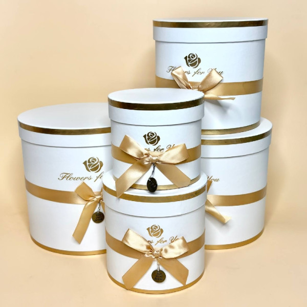 Ніжний та елегантний набір круглих коробок ідеально підходить для оформлення квіткових композицій та подарунків. Коробки виконані у стильному пастельно-рожевому дизайні з декоративною золотою окантовкою, що додає преміального вигляду.