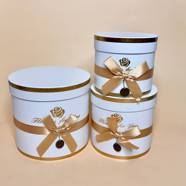 Ніжний та елегантний набір круглих коробок ідеально підходить для оформлення квіткових композицій та подарунків. Коробки виконані у стильному пастельно-рожевому дизайні з декоративною золотою окантовкою, що додає преміального вигляду.