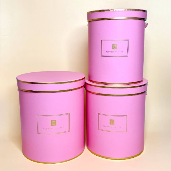 Набір з трьох круглих коробок для квітів рожевого кольору