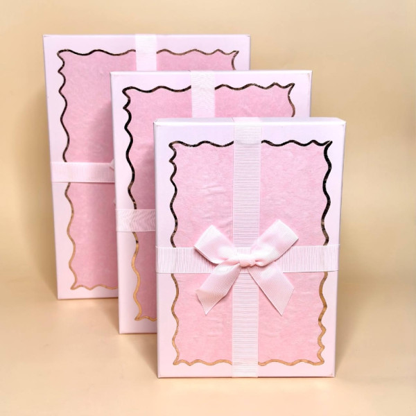 Стильний набір подарункових коробок — ідеальне рішення для красивого та охайного пакування подарунків. Коробки мають презентабельний вигляд, декоровані стрічкою та підходять для оформлення подарунків на день народження, Новий рік, Різдво, 8 Березня, весілля та інші святкові події.