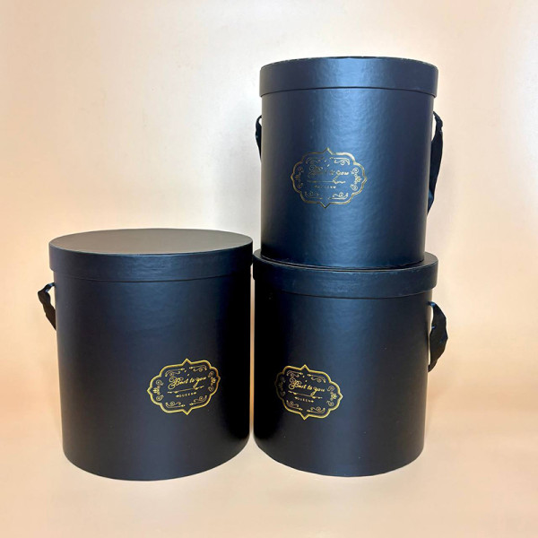 Круглі коробки для квітів та подарунків ніжно чорного кольору