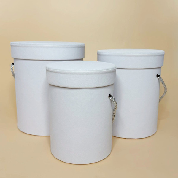 Круглі коробки для подарунків із кришкою та ручкою білого кольору Круглі коробки для подарунків із кришкою та ручкою білого кольору Круглі коробки для подарунків із кришкою та ручкою білого кольору