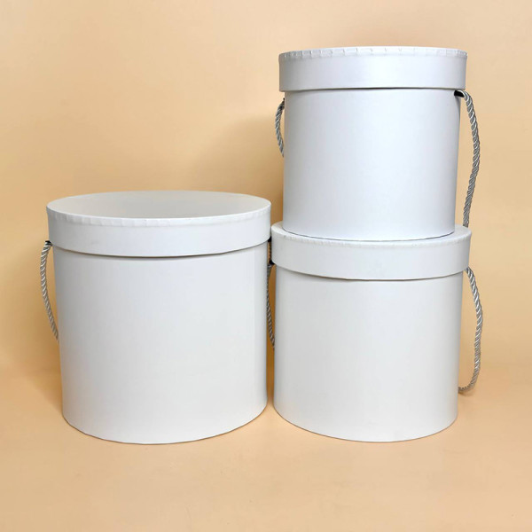 Круглі коробки для подарунків із кришкою та ручкою білого кольору