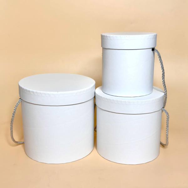 Круглі коробки для подарунків із кришкою та ручкою білого кольору