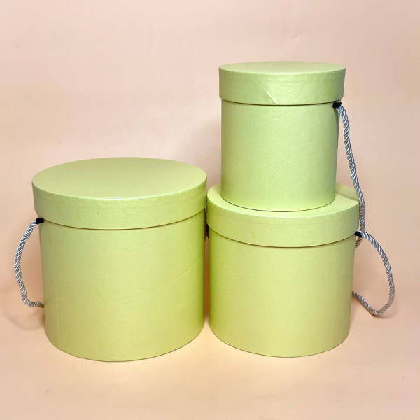 Круглі коробки для подарунків із кришкою та ручкою салатового кольору
