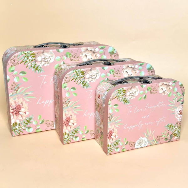 Стильний набір подарункових коробок-скриньок у формі валізок — ідеальне рішення для красивого та незвичного пакування подарунків. Кожна коробка має металеву ручку та застібку, що додає виробу оригінальності та зручності. Дизайн прикрашений квітковим принтом, який робить скриньки універсальними для подарунків на будь-яку подію.