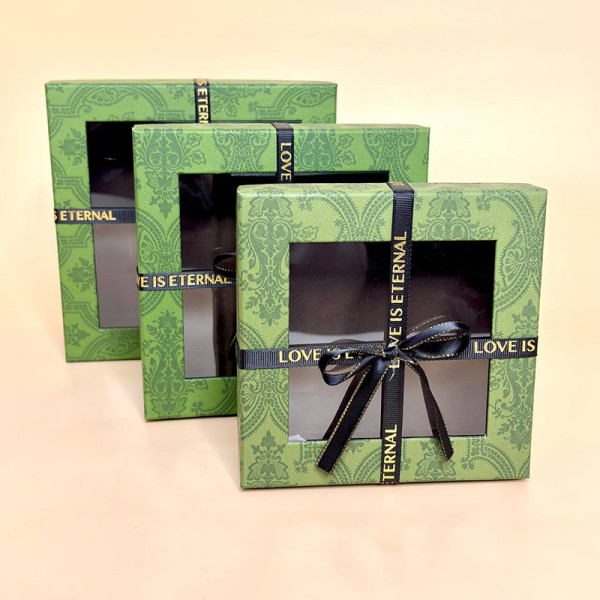 Набір  коробок з декоративними бантами  зеленого кольору Набір  коробок з декоративними бантами  зеленого кольору