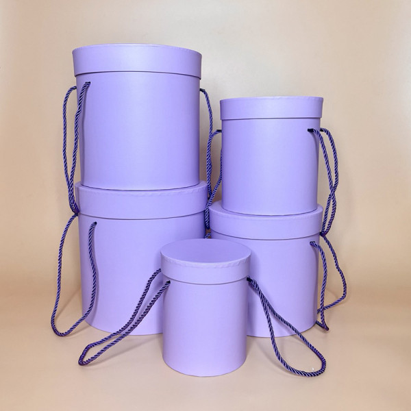 Набір круглих подарункових коробок з кришкою колір бузковий