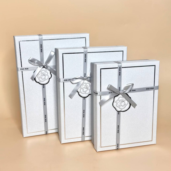 Набір подарункових коробок з бантом, 3 шт, білі прямокутні
