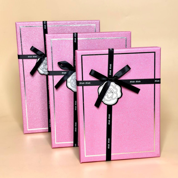 Елегантний набір подарункових коробок — стильне рішення для святкового пакування подарунків. Коробки виконані у ніжному рожевому дизайні з декоративною рамкою та оздоблені контрастною стрічкою з бантом, що надає подарунку завершеного та презентабельного вигляду.