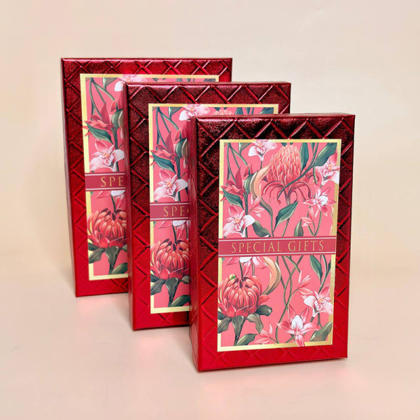 Набір подарункових коробок з малюнком "Квіти" червоного кольору