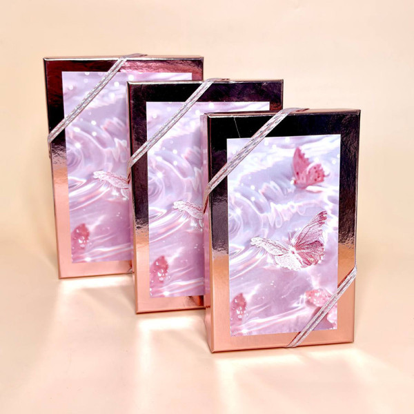 Набір подарункових коробок з малюнком "Метелики" рожевого кольору