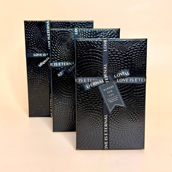Стильний набір подарункових коробок, оформлених елегантною стрічкою. Коробки мають жорстку конструкцію, акуратне оздоблення та виглядають святково й презентабельно. Ідеально підходять для оформлення подарунків на свята, дні народження, весілля, корпоративи чи інші особливі події.