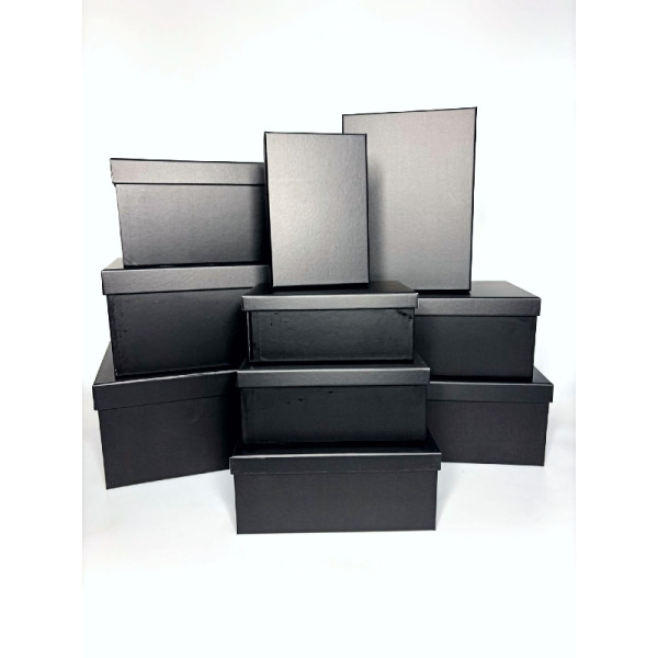 Набір з 10 однотонних прямокутних коробок різних розмірів чорного кольору