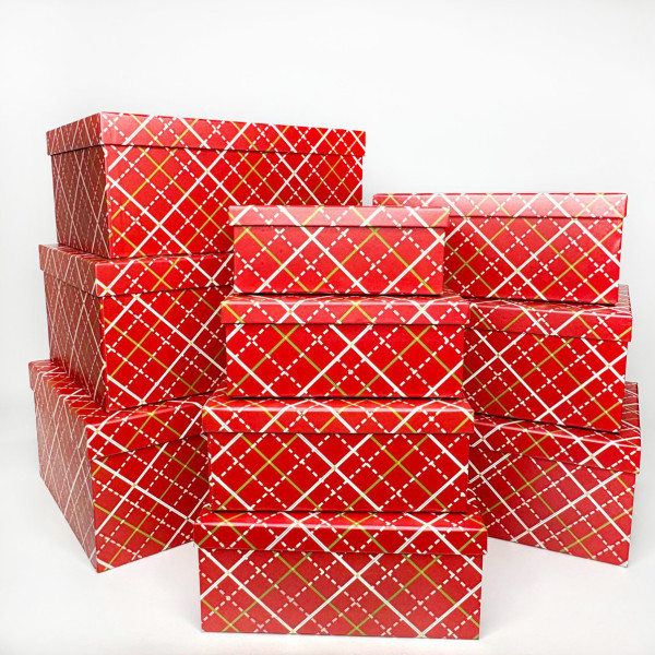 Набір новорічних коробок “Новорічні” червоні, 10 шт (прямокутні коробки)