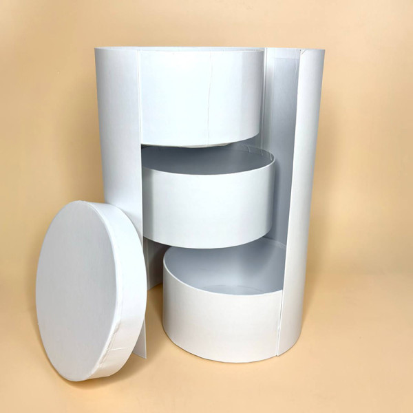 Подарункова циліндрична коробка з внутрішніми відділеннями — практичне та стильне рішення для оформлення квіткових композицій і подарунків. Завдяки багаторівневій конструкції коробка дозволяє розмістити квіти, солодощі, косметику або інші приємні дрібниці в одному виробі.