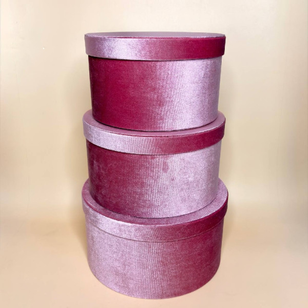 Вишуканий набір круглих коробок, обтягнутих м’яким оксамитом.