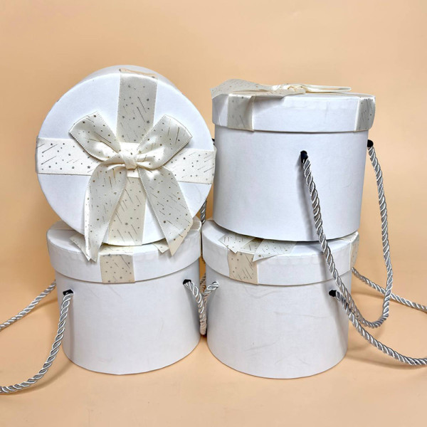 Подарункові коробки циліндричні з кришкою та бантиком білого кольору