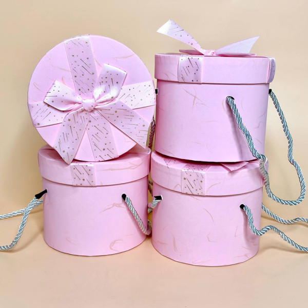 Подарункові коробки циліндричні з кришкою та бантиком рожевого кольору