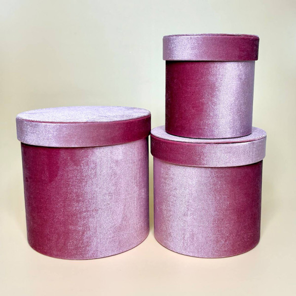 Подарункові коробки “Velvet Round” оксамитові (набір із 3 шт.) рожевого кольору