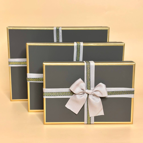 Стильний набір подарункових коробок — ідеальне рішення для красивого та охайного пакування подарунків. Коробки мають презентабельний вигляд, декоровані стрічкою та підходять для оформлення подарунків на день народження, Новий рік, Різдво, 8 Березня, весілля та інші святкові події.