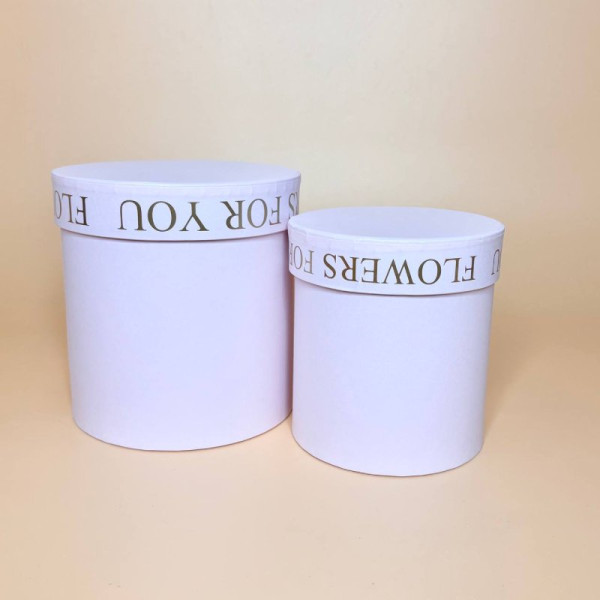 Шляпна коробка для букетів кругла з написом FLOWERS , рожевого кольору