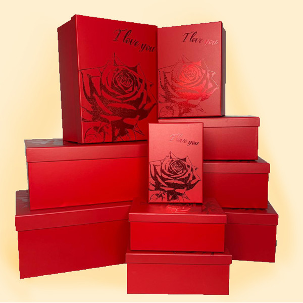 Набір подарункових коробок Rose— стильне рішення для оформлення святкових подарунків та створення ефектних презентаційних наборів. Коробки виконані у насиченій червоній гамі з великим малюнком на кришці, що робить набір ідеальним для романтичних подій, весіль, подарунків до Дня закоханих чи святкових колекцій.