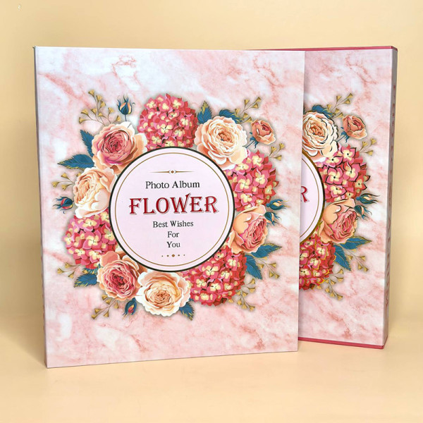 Фотоальбом з квітами у подарунковій коробці рожевого кольору