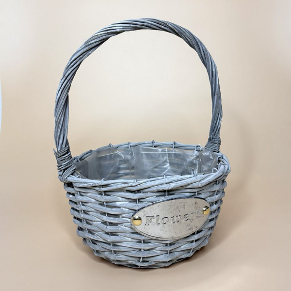 Кошик плетений " Flower" круглий сірий з ручкою та вкладкою