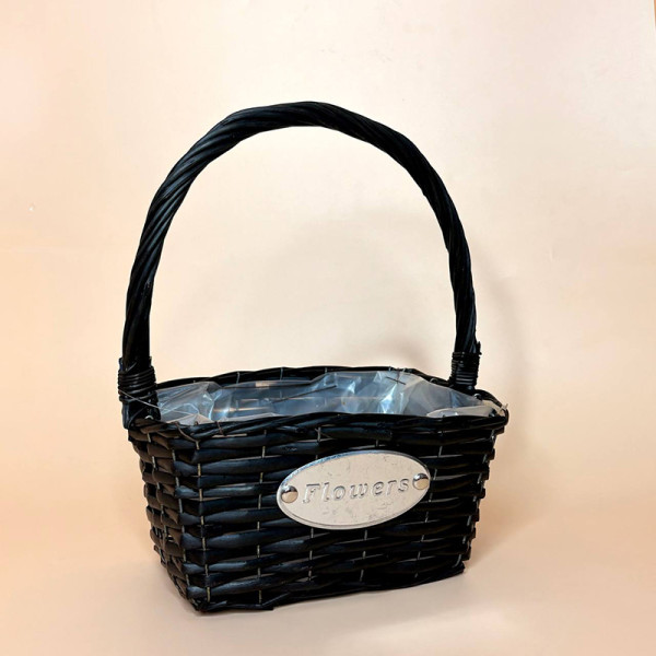 Кошик плетений " Flower" прямокутний чорний з ручкою та вкладкою