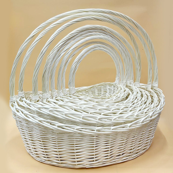 Великий набір овальних плетених кошиків — ідеальний варіант для створення ефектних подарункових композицій, флористики та декору. У комплект входить 10 кошиків, які чудово підходять для оформлення великих букетів, подарункових наборів та святкових інсталяцій.