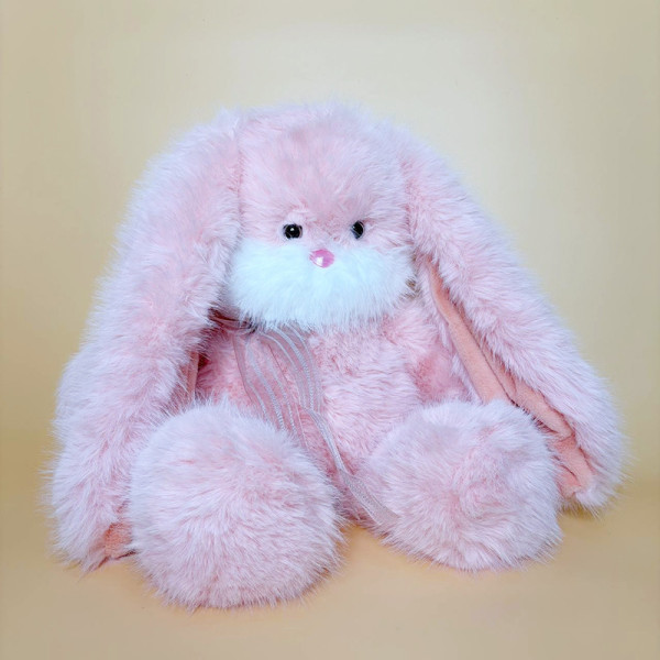 М’яка іграшка зайчик пухнастий з довгими вушками рожевого кольору