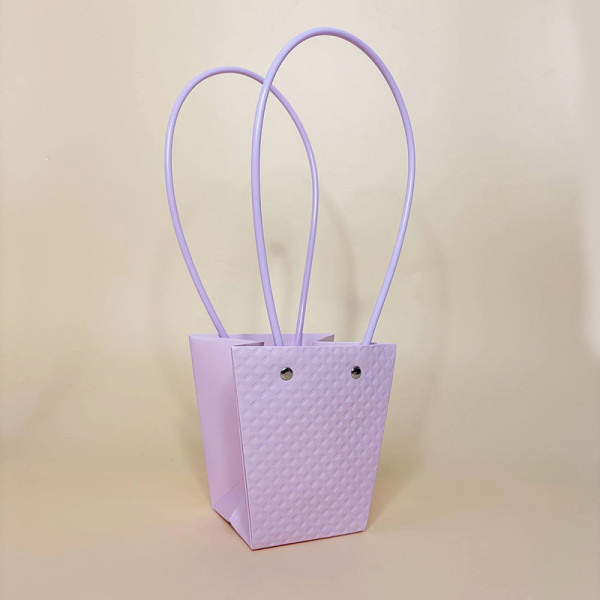Сумочка має зручні ручки, завдяки яким її легко переносити, а щільний матеріал добре тримає форму та підходить для створення квіткових композицій. Всередину можна розмістити букет, коробку з подарунком, солодощі або інший сюрприз.