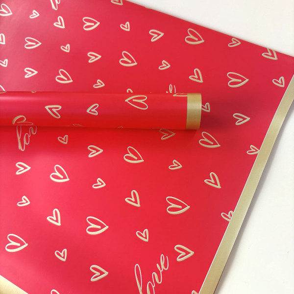 Флористичний пакувальний папір для квітів червоний із золотими серцями