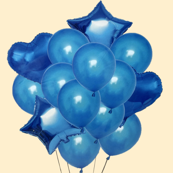 Набір кульок "Мікс" фольгованими зірками та сердечками 14 шт синього кольору