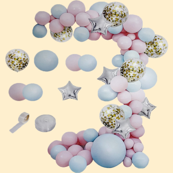 Цей набір із 100 повітряних кульок — готове рішення для створення ефектного святкового оформлення. Комплект включає кульки різного діаметра, що дозволяє легко створювати об’ємні гірлянди, арки чи настінні композиції. Елементи різних форм гармонійно поєднуються між собою та створюють стильний декоративний акцент у будь-якому інтер’єрі.