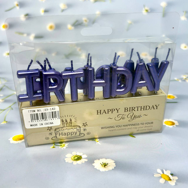Свічки на торт «HAPPY BIRTHDAY» у вигляді літер, колір: синій